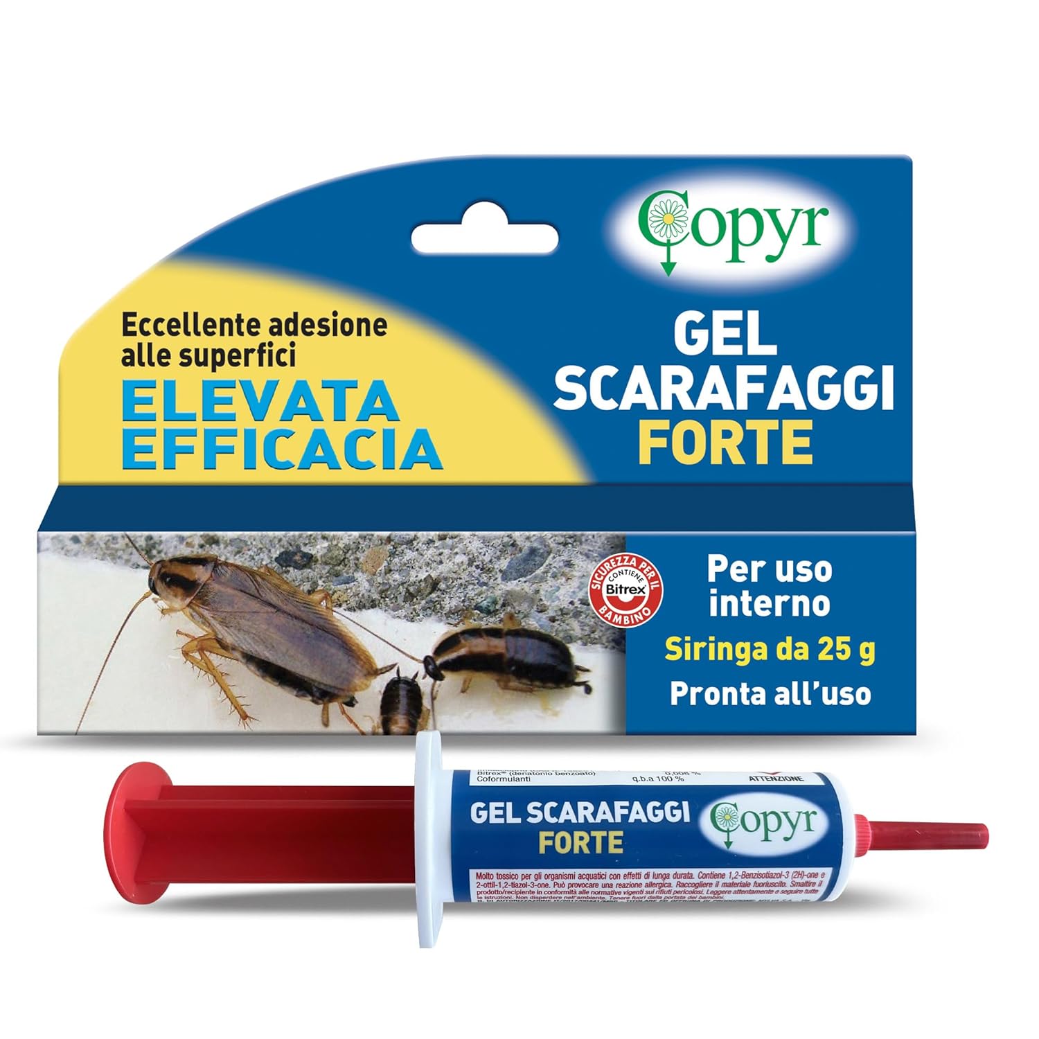 GEL PER SCARAFAGGI FORTE è un insetticida in formulazione gel da utilizzare in interni, efficace contro le specie adulte di Blattella germanica, Blatta orientalis, Periplaneta americana. VALIDITA’: 48 mesi